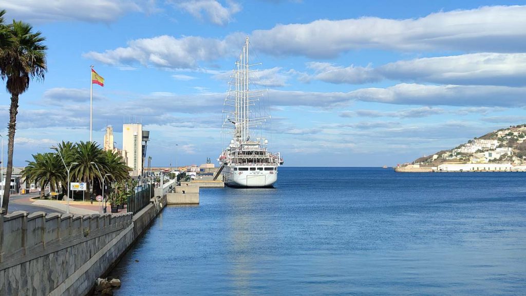 Прогноз погоду на Атлантику не очень, похоже мы не успеваем проскочить до Мадейры перед очередным циклоном. Уходим в Сеуту, там есть что посмотреть во время ожидания благоприятной погоды. Дует западный ветер, к Африке он усиливается до 30 узлов, быстренько доходим до Сеуты и в 17 часов швартуемся в марине.