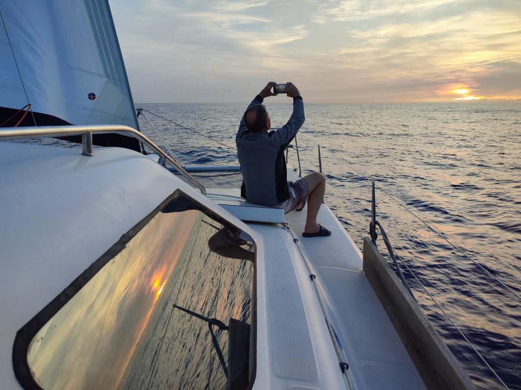 Около полуночи ветер опять меняет направление, мы также меняем галс и теперь идем примерно на Лансароте. Днем приходят дельфины и довольно долго сопровождают нас, играя под форштевнем, демонстрируя нам свою ловкость. Днем 6 ноября появляется Тенерифе и интернет. В 19 часов 6 ноября швартуемся в марине Радасуль.